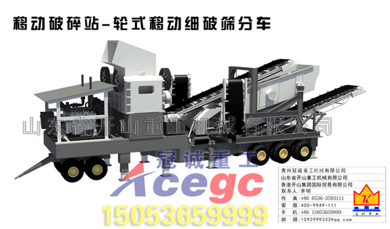 本套移動破碎站簡介: 本系列輪式移動破碎站長度短,不同的破碎設備分別安裝在獨立的可移動底盤上,軸距短,轉彎半徑小,可以在普通公路上及作業(yè)廠區(qū)靈活行駛。 本系列輪式移動破碎站可以在現(xiàn)場加工物料,而不必將物料搬離現(xiàn)場再加工,大大地降低了物料的運輸成本。 本系列輪式移動破碎站可根據(jù)不同的破碎工藝要求組成“先碎后篩”,也可以組成“先篩后碎”流程,破碎站可按實際需求隨意組合,還可以獨立運行,有很大的靈活性。